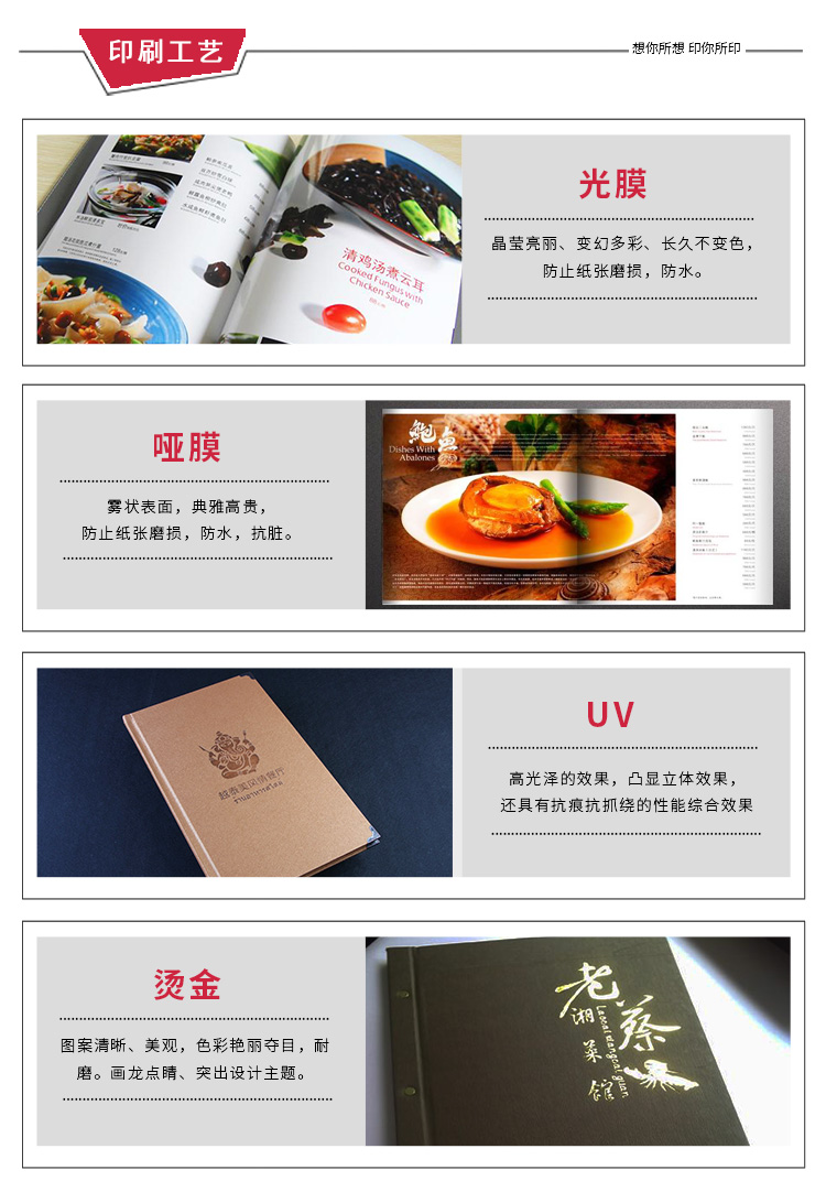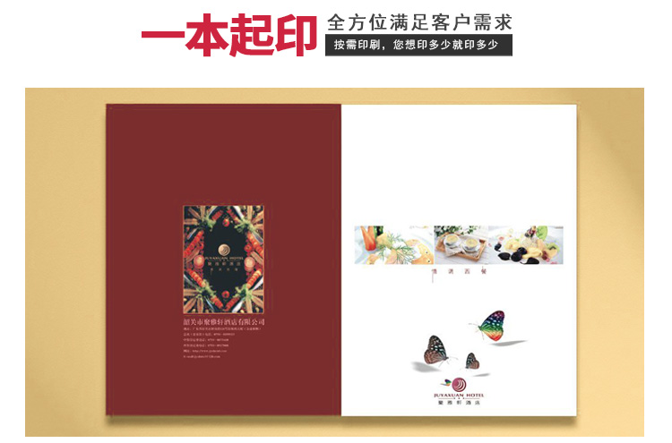 我們一直為各類酒店、酒樓、酒吧、咖啡廳、夜總會(huì)、高級(jí)會(huì)所等餐飲場(chǎng)館,提供菜譜、酒水單的訂制服務(wù),為個(gè)性化風(fēng)格特別工藝的菜譜制作要求,提供有別于競(jìng)爭(zhēng)者的完整解決方案。
